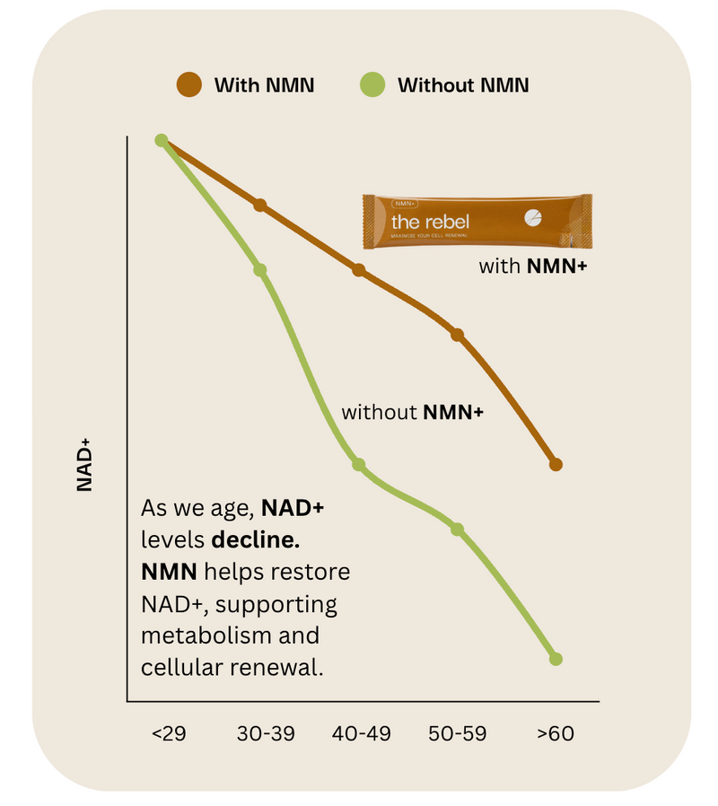 NMN (Nicotinamide Mononucleotide) is a powerful precursor to NAD⁺, the molecule your cells rely on for energy, repair, and longevity. As we age, NAD⁺ levels decline impacting metabolism, sleep, skin, and vitality.